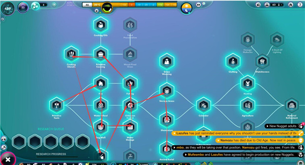 之后我们会获得游戏开始的2位市民(泥瓜)亚当和夏娃(确信),然后开始选择科技,建议如图选择: