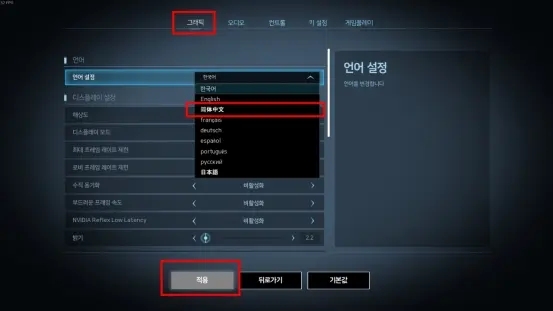 2、玩家按照下图进行语言设置,你会发现整个界面都是韩文,看不懂也没关系,玩家只需找到“简体中文”选择即可;