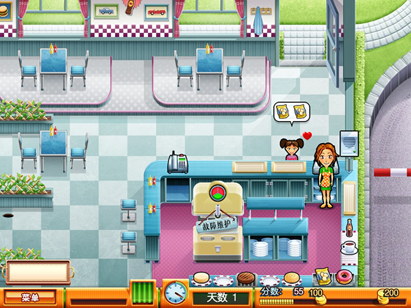 5、游戏画面延续这个系列清新明快的风格,各种图象绘制的精致细腻、卡通感十足,不同的场景主题表现出多元化的餐厅环境,并且玩家可以在过关后购买一些装饰品把餐厅装饰的更为华丽。
