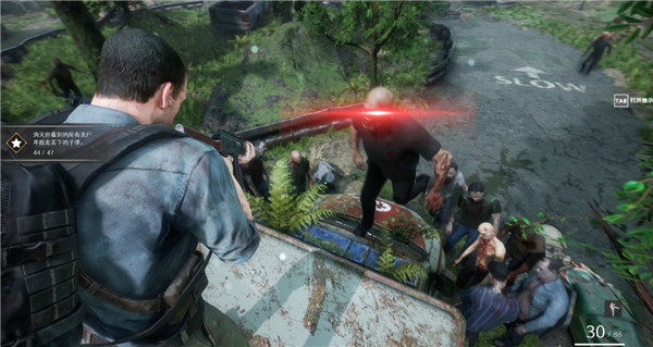 4、跟随游戏教程提示,通过攻击弱点杀死僵尸