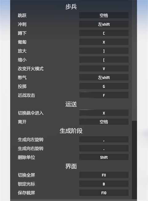 开火键:LMB