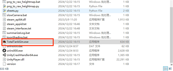 1、在本站下载并解压文件夹,得到全面坦克模拟器游戏启动文件,双击TotalTankSim.exe进入游戏,下方unins000.exe文件为卸载该游戏