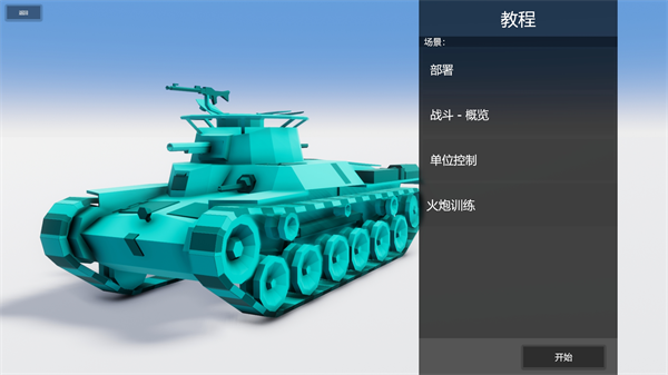 教程模式顾名思义将教会玩家一些基础操作,教程共分为四关部署、战斗-概览、单位控制和火炮训练。