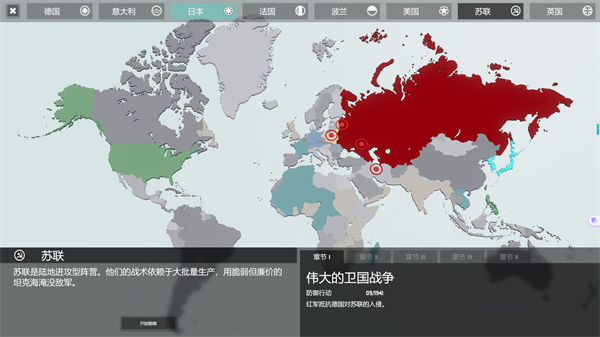 游戏中共有8个可选国家:法国、德国、波兰、英国、意大利、日本、美国以及苏联。