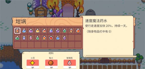 2、魔法药水的制作是需要2*精灵材料或者1精灵材料1普通材料+空瓶,药水都是有持续时间的,时间到药效就没了。
