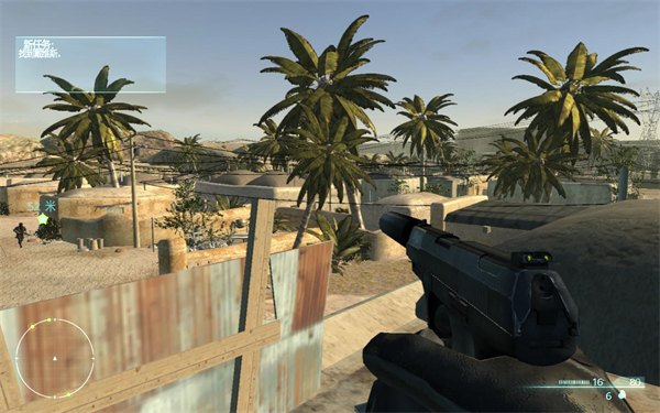狙击猎手在操作上秉承简洁之风,WASD ,加鼠标键,这些基本就可在游戏中横着走了。游戏中,屏幕上会有一个绿色的五角星,并标有多少米,跟着它走,一步一步就可杀向终点。值得一提的是,E键,抓取东西,像爬梯子之类