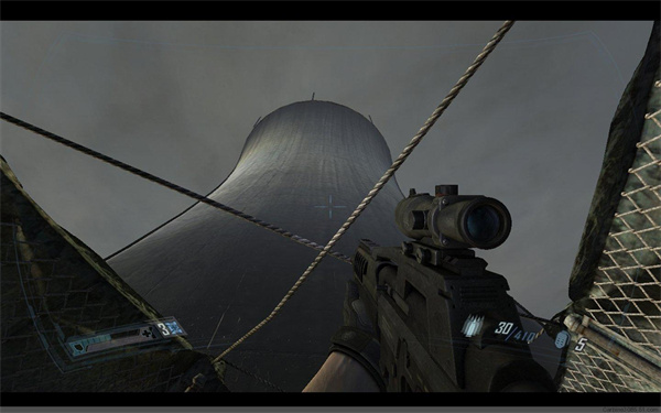 与美女队友汇合后,启动电梯,之后进入另一个气密仓,除了气密仓后,来到巨大的冷却塔下面。