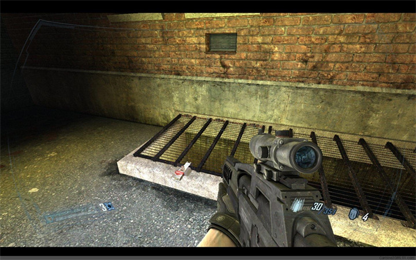 关闭后跳下一楼。走到户外直升机坠毁处,之后同队友汇合触发剧情,队友倒地,只好一个人继续前进,消灭掉庭院里的ATC部队后,进入房屋,走到另外个庭院,干掉敌人的重装兵可以拾取射钉枪,不过我没舍得扔我的狙击步枪。来到旁边的篮球场,打掉通风口的锁,跳下去