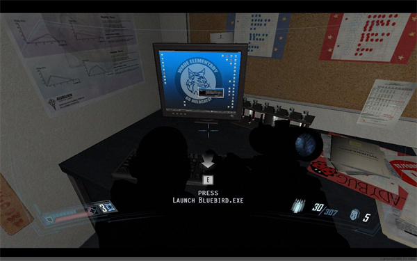 来到大路,遇到到敌人的重型机器人,正常的话这时你应该有10发火箭弹了,轻松搞定机器人。再次打掉电线杆上的变压器。一路前进,上到楼顶,拾取狙击步枪解决的掉广场周围的狙击手,之后两发火箭弹干掉敌人的装甲车。之后继续同敌人战斗,注意收集狙击步枪弹药,这枪威力巨大,绝对的大杀器。消灭广场的敌人后,下到地下,穿过洗衣房,来到室外!看,重型机器人在向你招手,还等什么,爬上去玩射击游戏吧。(提醒,G键是发射火箭)一路神挡杀神佛挡杀佛,最后来到一间车库,确认肃清敌人后,从机器人上下来开门(长按E)