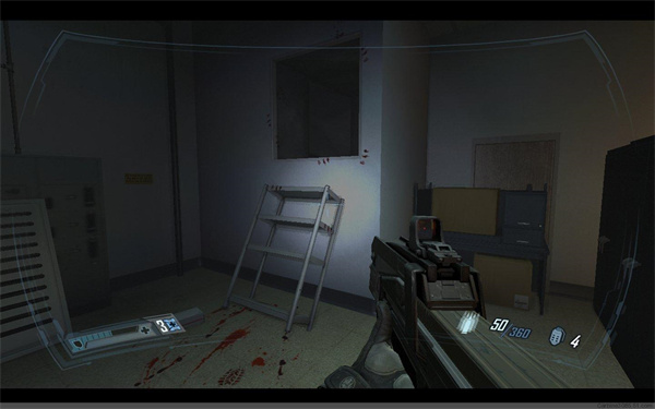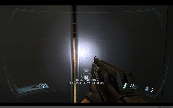 下楼,从一个半开的门下过去,见到科学家后,拿到一电浆枪,但是科学家被隐形复制兵杀害(这镜头忒血腥)原路返回到刚才的监狱电脑控制室,从后面被打破的门出去