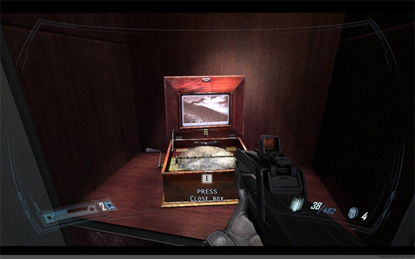 最后的BOSS战(姑且这么说)一共有三关,每一关需要你走到控制台去开启一个开关,当然没那么轻松,你要面对的是已经幽灵化的队友,他可以一次变出两三个分身来攻击你,攻击力和速度是都十分变态,而且好像还会瞬移,合理运用你的子弹时间,运用障碍物来隐蔽,安排好路线,尽快的打开开关。三个开关打开后,随着ALMA销魂的叫声,你也一枪解决了发狂的队友。
