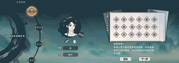 玩家创建家族时,可以选择一个特有的血脉作为传承,其中玩家自身必然携带这个血脉能力,家族后人中将有机会出现此血脉。