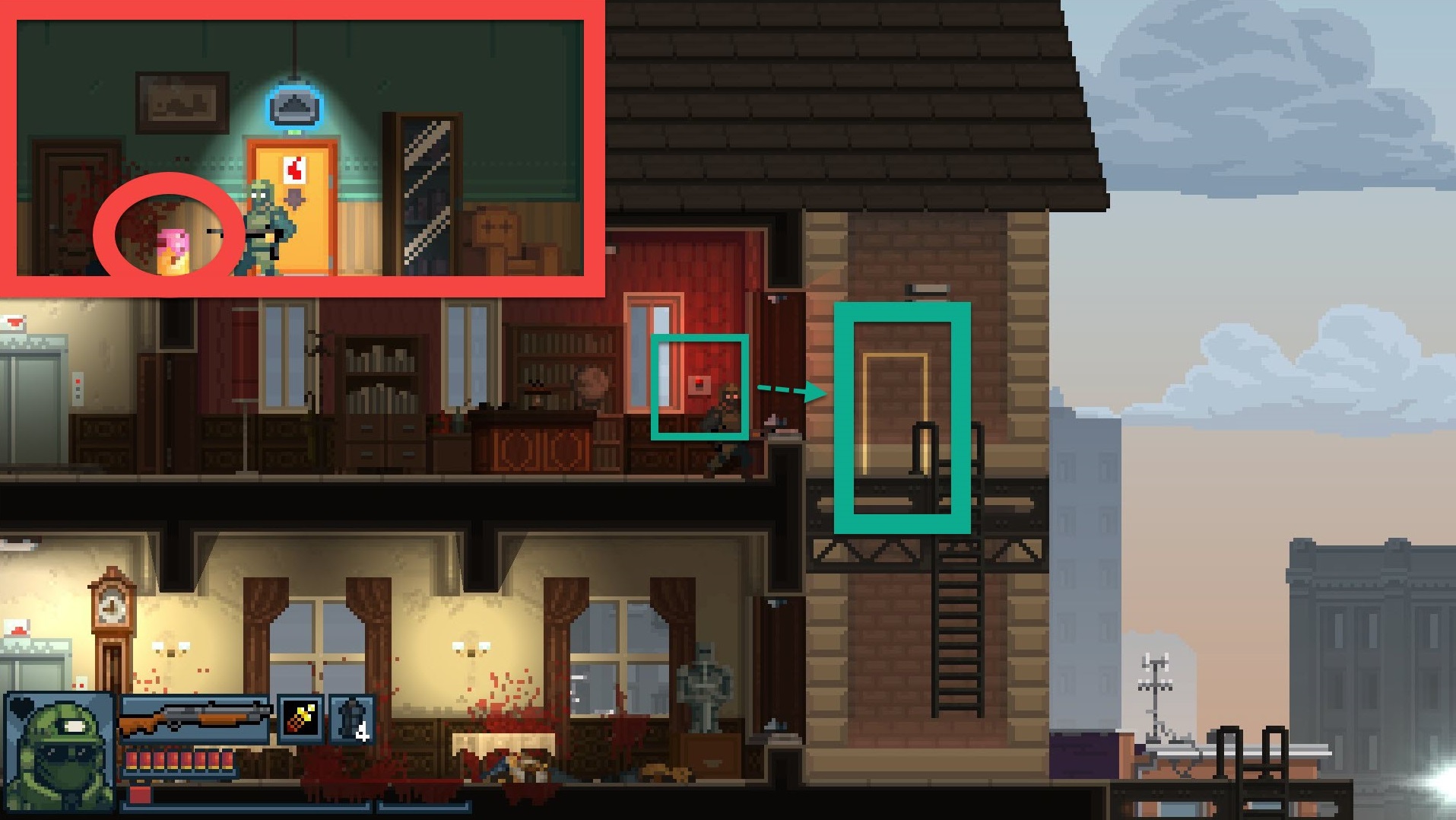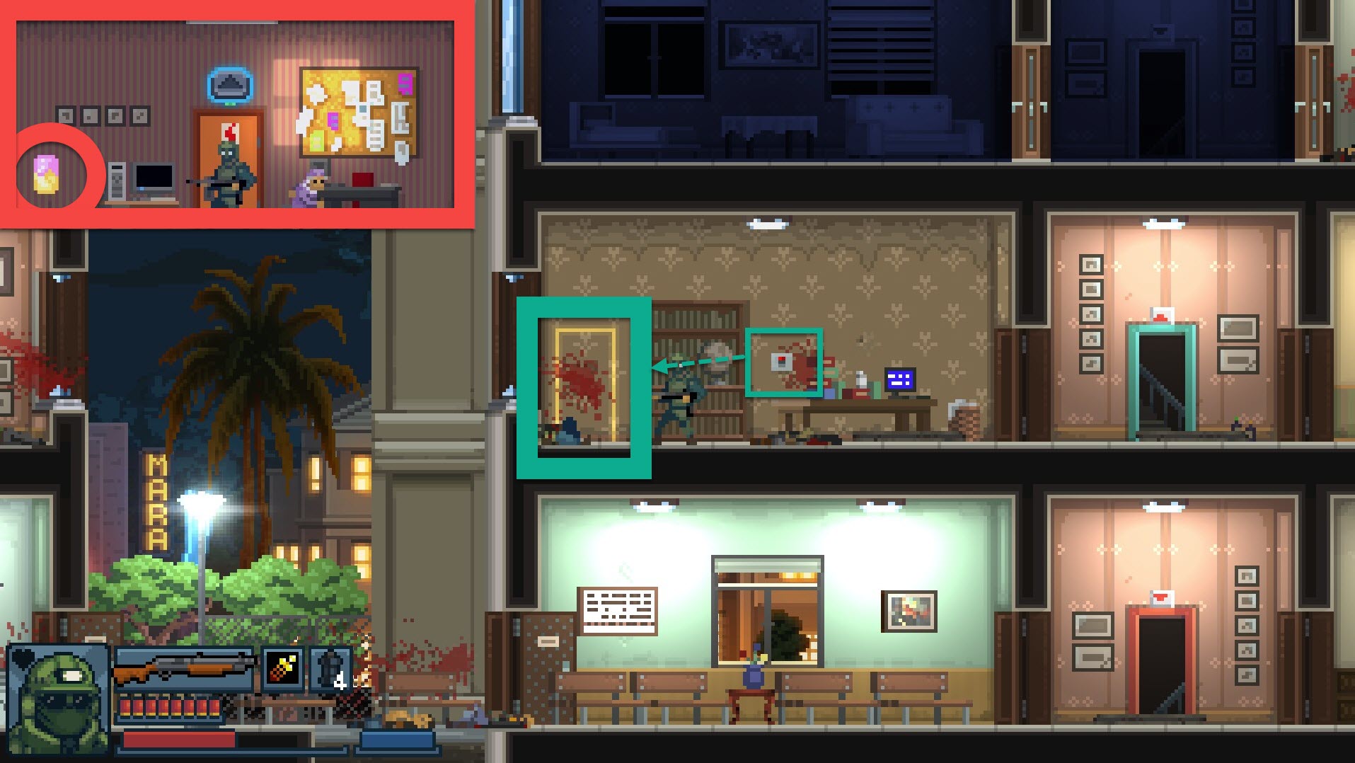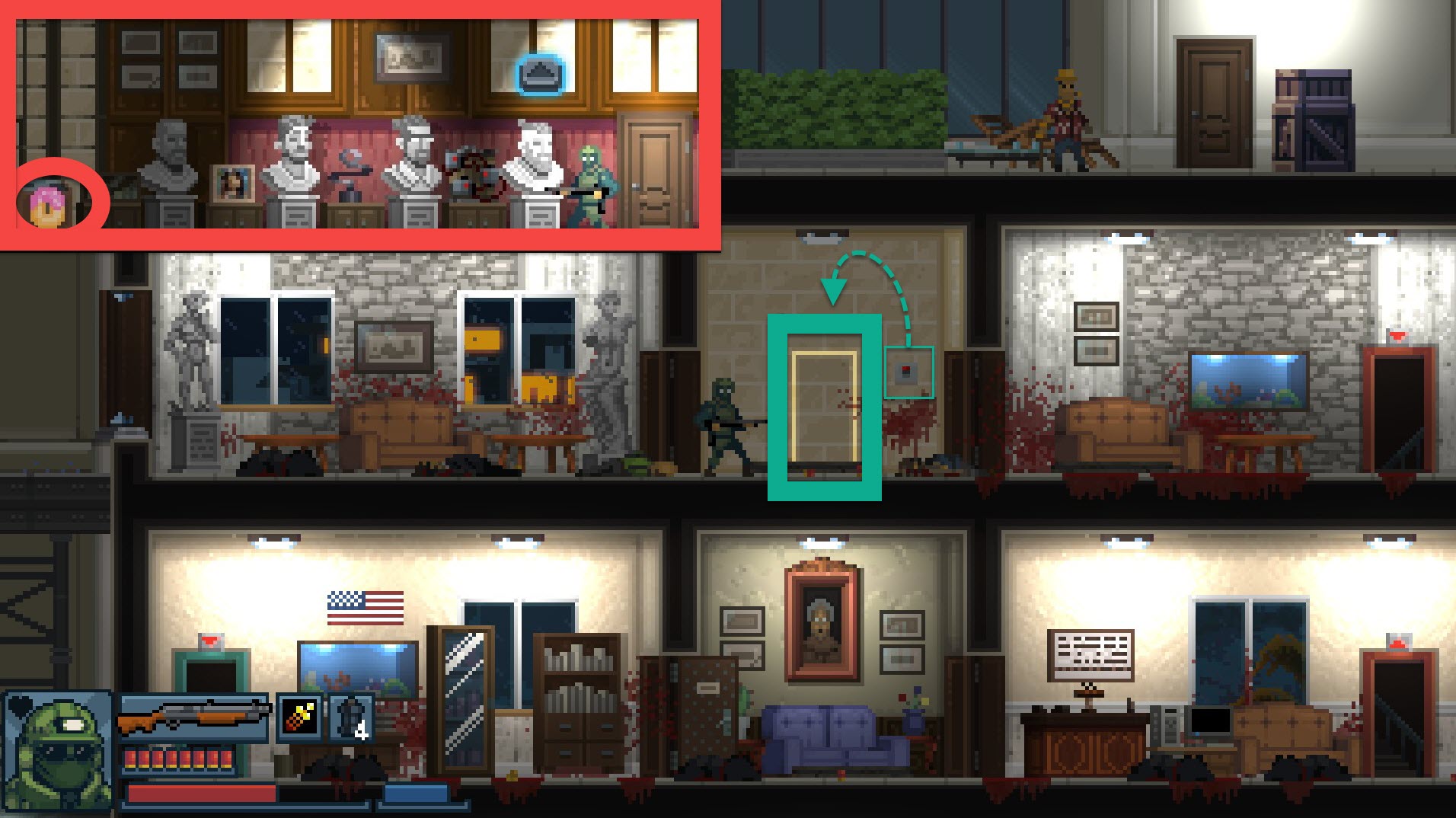 破门而入行动小队(Door Kickers Action Squad)是一款横版动作射击电脑游戏,玩家将扮演特警战士,执行各类危险任务,游戏中可选择不同特警角色,例如能用球形摄像机侦查敌情的侦查员,或是依靠盾牌抵御攻击的盾牌兵,每位角色都具有独特的战术能力。