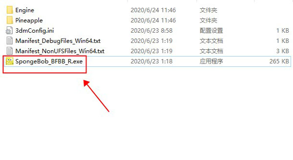 2、打开游戏路径,运行SpongeBob_BFBB_R.exe开始游戏;