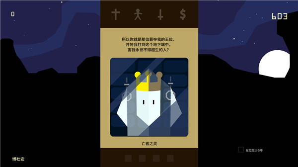 2.然后你需要在Lady Karkovia问你要学习什么白魔法的时候选择trick the devil,她会给你六个数字。这些数字对应的是年份,你可以在那条写着你前几任国王死法的线上找到这些年份,发现周围会有几个符号。这些符号和Pungeon里出现的符号是相同的。符号周围的国王有一些面对符号,有一些背对。推荐截个图之类的记住这些符号的排列
