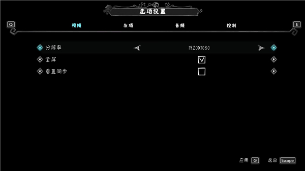 6、接着进入选项设置中在视频选项下可以根据自身情况设置游戏分辨率、是否全屏等信息;