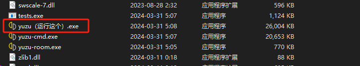 1、在本站下载解压好压缩包之后,点击打开“yuzu柚子模拟器”文件