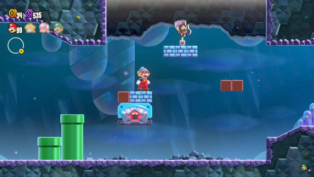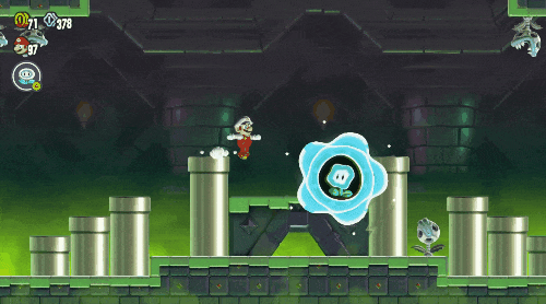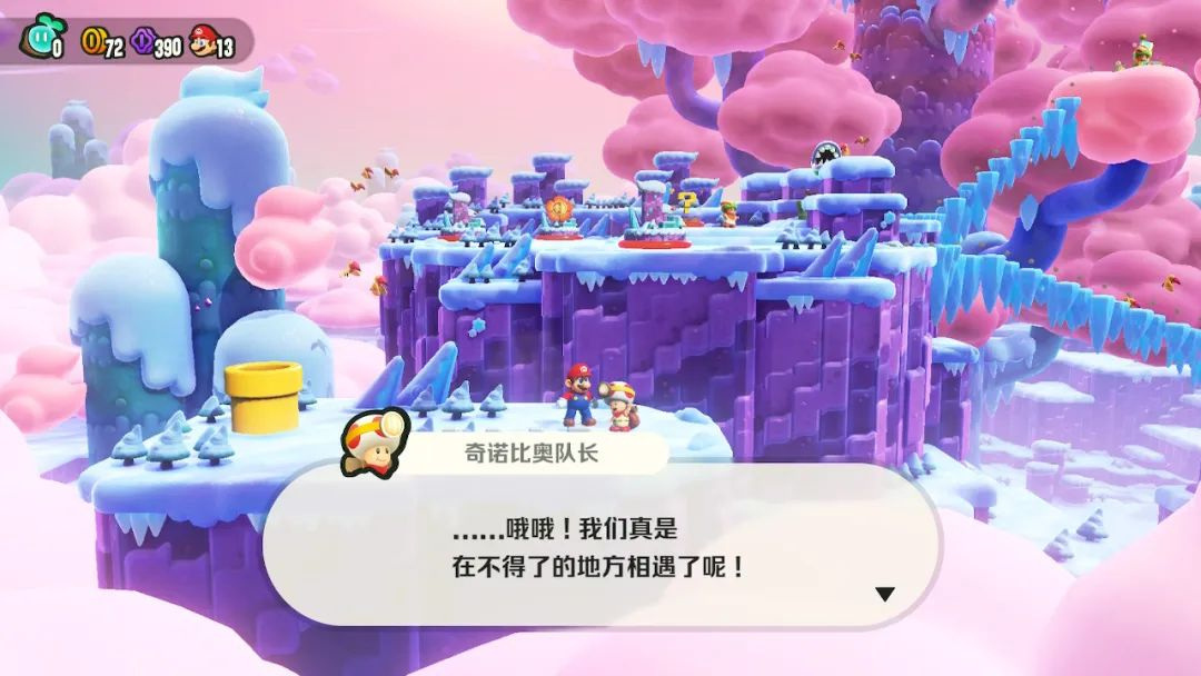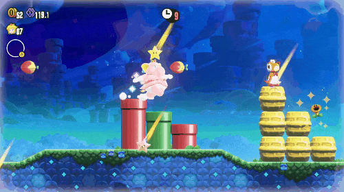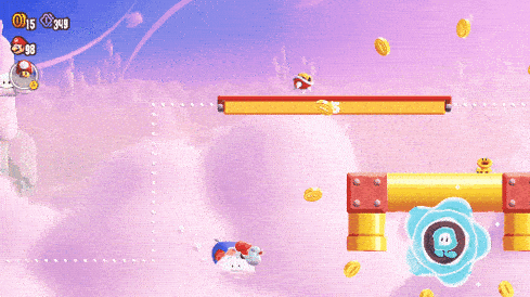 在游戏中,任天堂加入了一个新设定,惊奇花。只要在关卡中遇到这朵花,立马就会进入各式各样的幻觉世界,奇妙迷幻又绚丽疯狂,让横版跳跃的关卡设计,有了更多可能性。