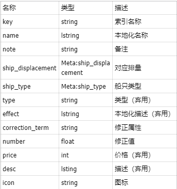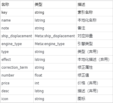 - 船只配件的生效方式是对所配置引擎的correction_term(属性)+number(修正值)