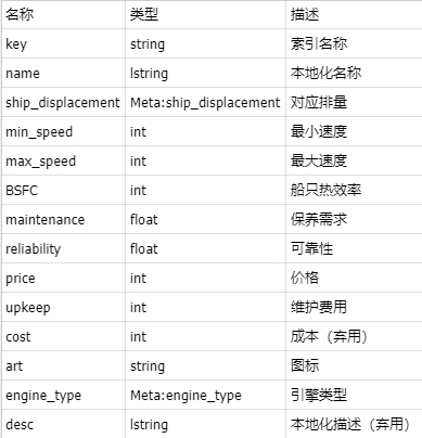 - 船只消耗表,船只发动机的属性之一,船只航行过程中的补给费用由此为基础