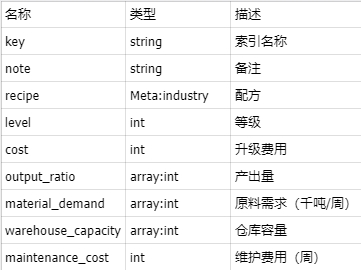 - output:该产业产出货物,虽然配置为数组但目前仅支持单项产出,此为拓展预留