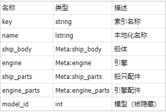 这里配件的对应类型及排量只做区分作用,实际配件在船只蓝图中可以任意组装,但数据不可为空