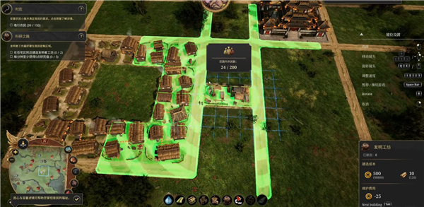 5、然后建造一些发明者工坊,绿色区域是该建筑可覆盖地区,尽量选择覆盖地区大的位置放置。