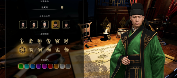 2、定制角色外观,并选择王朝徽章、配色。