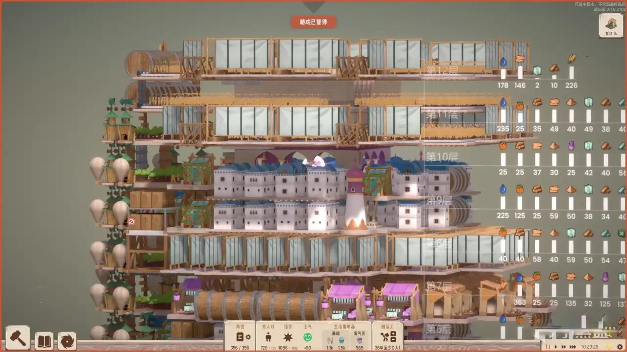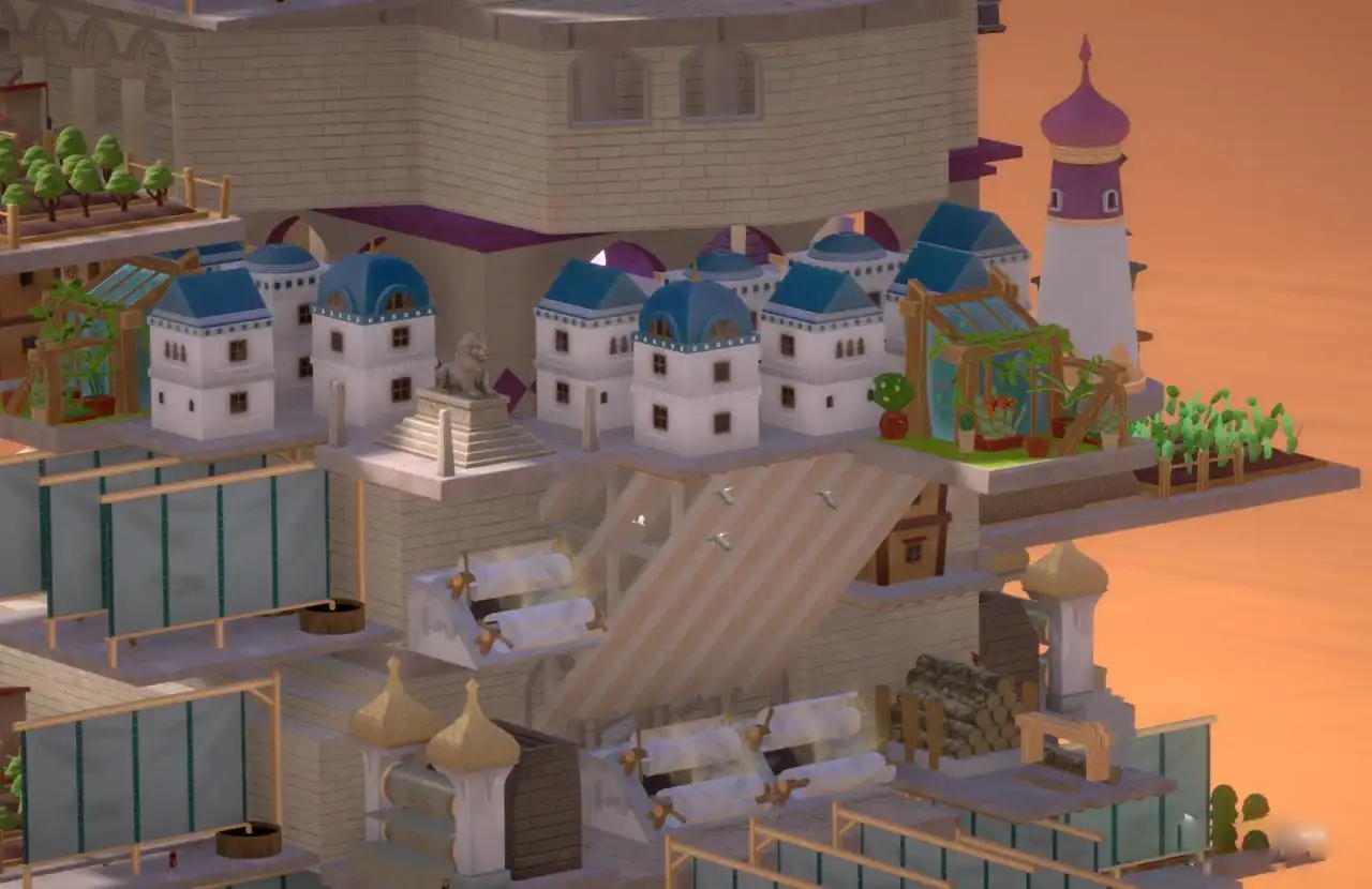 巴别塔垂直国度(STARIO Haven Tower)是一款垂直城市建设模拟游戏,背景设定在文明被末日沙尘暴摧毁后的世界,玩家将作为“塔主”,需要带领幸存者从沙漠中的基座开始,向上建造一座通天巨塔,穿越风沙、迷雾、雨水、冰雪等六个生态迥异的大气层,目标是抵达星空尽头,完成重振文明的故事主线。玩法上,巴别塔垂直国度主要围绕垂直空间规划与资源管理展开,玩家不仅需要建设居民住房、农场和加工设施来满足塔民需求,还必须通过研究科技解锁管道、热气球等纵向物流系统,高效调配各楼层资源以应对“高层缺建材、底层断粮”的挑战!而在此过程中,玩家还要动态防御沙暴、暴雪等天灾,后期还能通过仪式平台主动操控环境或强化塔民能力。