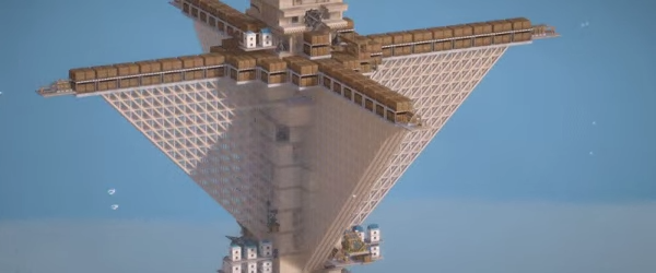 利用斜撑加固塔身,拓展横向空间。近乎悬空的高空花园,或是网状结构般的天空平台。挑战重力限制,撑起天空之城的无限创意。