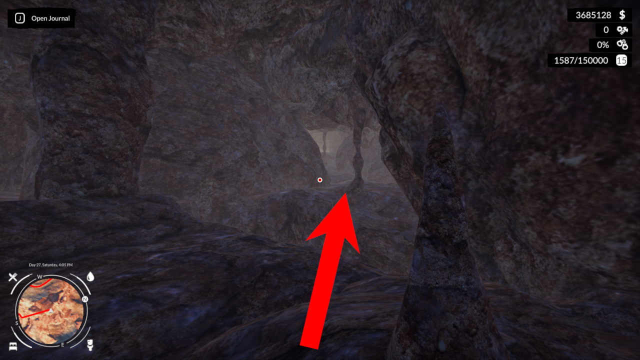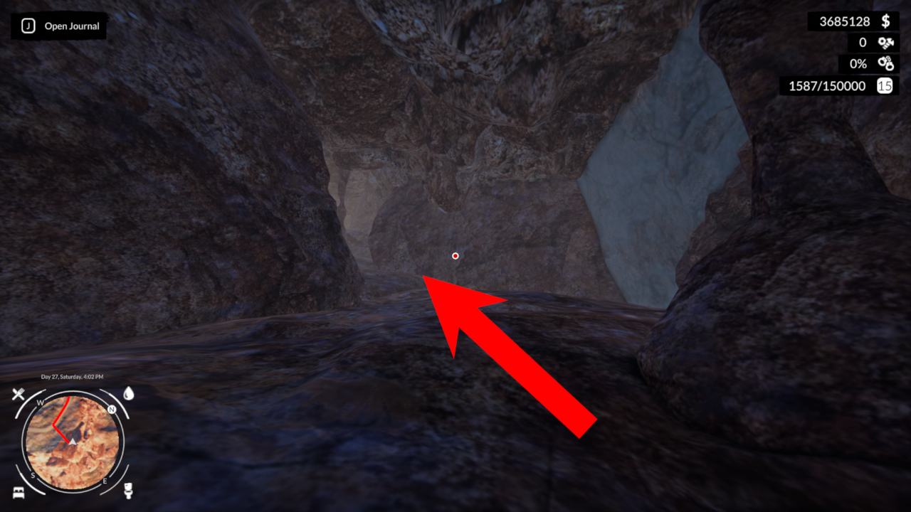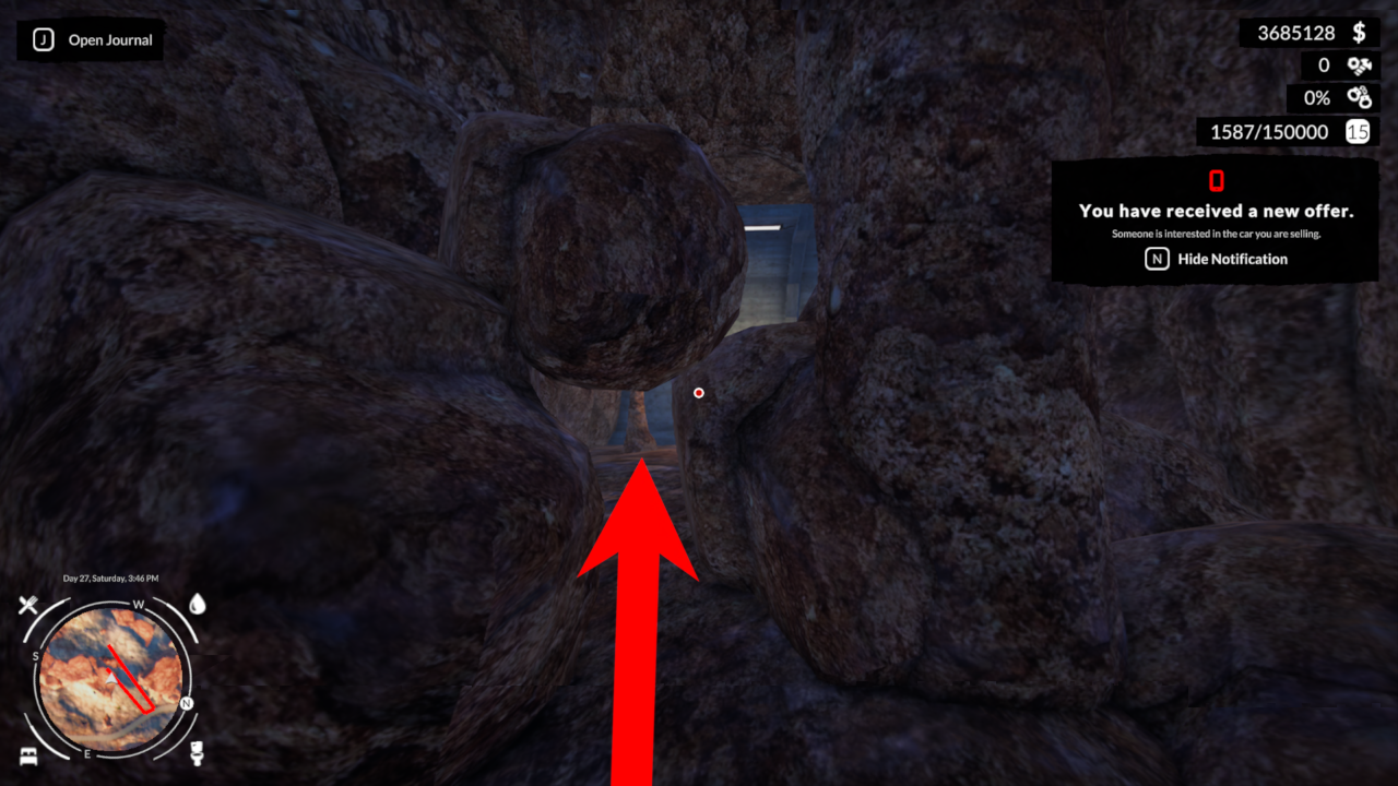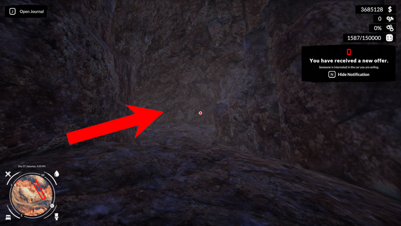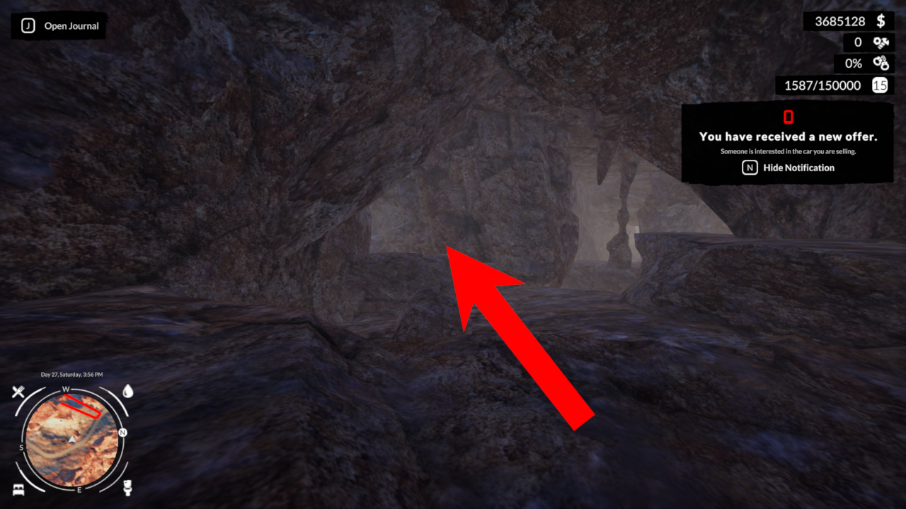 首先,在沙漠中前往下方区域。悬崖正前方的沟渠里应该有一辆锈迹斑斑的废弃汽车。