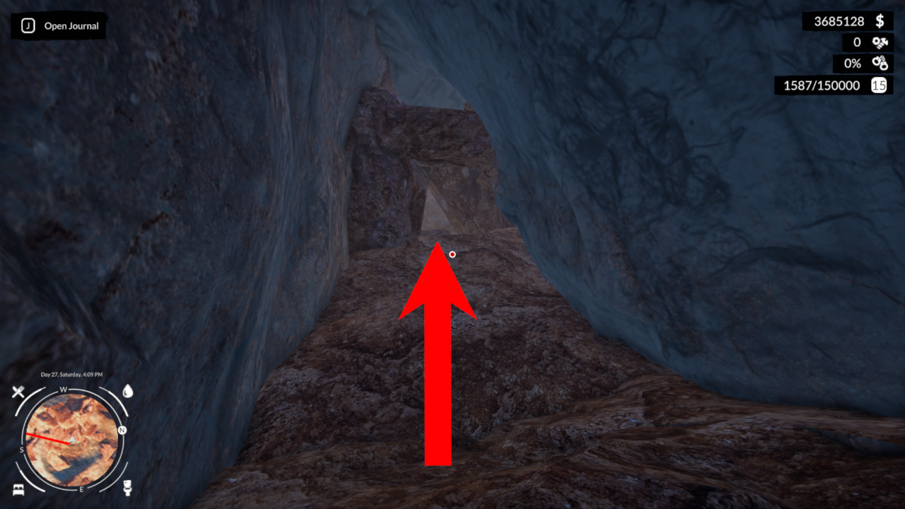 爬上岩架后向前直走再右转,有条狭窄缝隙可以穿过去。