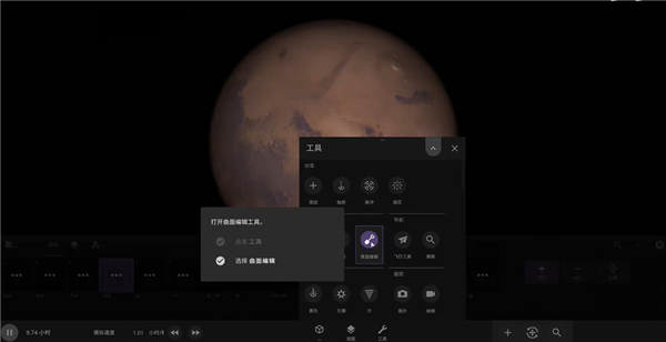 1、选择一个星球点击下方的工具;