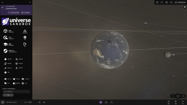 宇宙沙盘(Universe Sandbox)是一款基于真实天体物理学打造的宇宙模拟沙盒游戏,它没有传统意义上的线性剧情,而是赋予玩家“宇宙上帝”般的角色,让你在遵循牛顿力学和引力法则的虚拟宇宙中自由创造、观察甚至毁灭天体。玩法上,玩家可以从无到有地构建恒星系统,如土星、水星、金星、地球、火星、木星、冥王星等,并观察行星间的引力互动与轨道运行,体验陨石撞击地球等震撼场景。此外,宇宙沙盘游戏还提供静态、环绕、双星系统及撞击在内的多种模式,可让玩家在高度自由的互动中直观感受宇宙的壮阔!