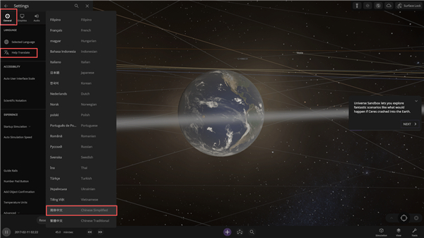 宇宙沙盘电脑版怎么切换中文语言