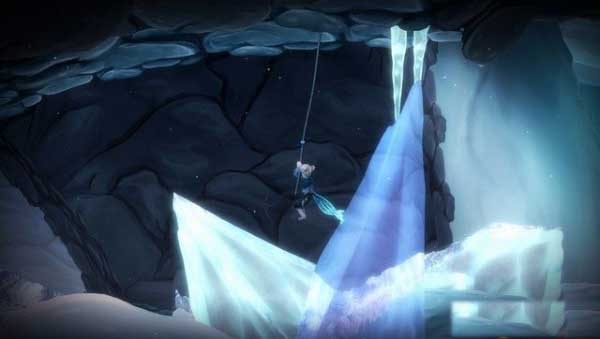 之后这个雪球会越滚越大,最后会停在尽头的悬崖底下,最后,踩着雪球就可以上去了。