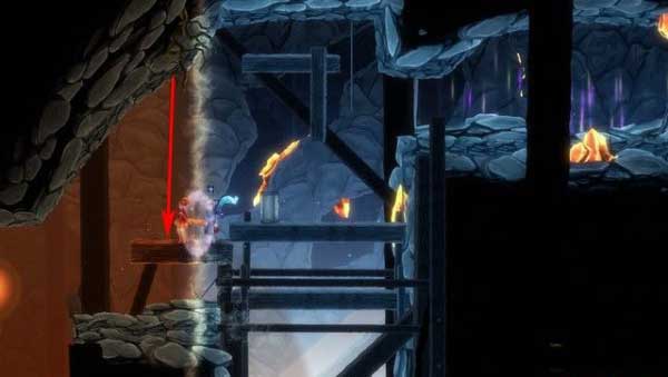 过了上面的机关之后,来到下图这里,将火女移动到右侧即可升起平台。