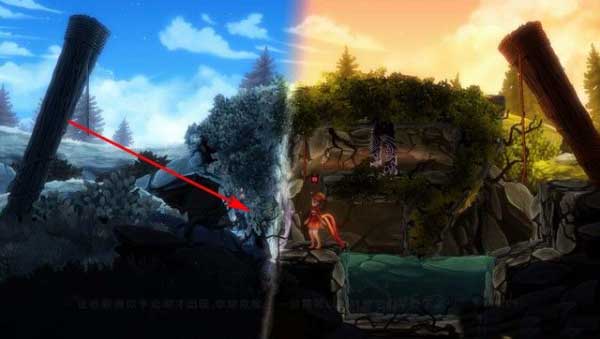 在序章中,男女角色会相互切换,最开始的房间,女主往右边走,爬下绳子,那男主往左边走,爬上绳子。