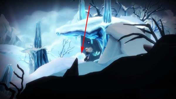 男主这里,如下图箭头所指,在雪地平台下面有个小雪球,将雪球往左边推,