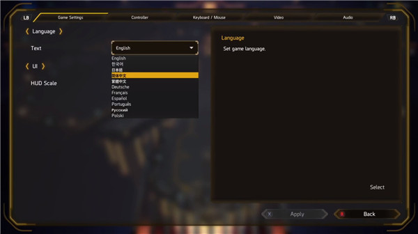 2、进入游戏默认英文界面,按esc键切出菜单,点击设置选项