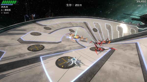 扭曲空间(Curved Space)是由Only By Midnight Ltd. 制作Maximum Games发行的一款华丽酷炫的双摇杆射击游戏。游戏受到街机经典飞行射击游戏的启发,融入诡异的太空场景,在奇异扭曲的太空场景中消灭入侵的蜘蛛异形,子弹会因扭曲立场环绕地面飞行。玩家将需要“吃”武器强化道具和升级道具,同时躲避敌人的火力,摧毁亚空间的虫子,并与一些巨大的boss怪物缠斗。这款游戏很容易上手,你只需挑战各个由情节推动的分支战役。但想要在游戏中游刃有余,斩获名次,在扭曲的战场上迎战入侵宇宙的蜘蛛,在急剧起伏的环境里体验子弹环绕地形飞行的快感。玩家要在躲避敌人火力、爆破跨维度障碍和对垒大boss的同时,尽力搜集武器强化和升级道具。此外,在这里还有许多模式玩法可以玩,如生存模式、无尽模式以及每日挑战,生存模式将在一浪接一浪的入侵中抵抗到底,每波入侵都会带来更加困难的新挑战。你可以选择自己喜欢的玩法模式开始游戏。