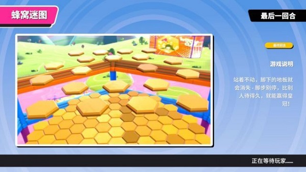 规则:多层的蜂窝地板,只要有人在地板上触碰 1 秒左右就会消失,属于淘汰和生存类型的图,最下面是粘液,能够在地板上坚持到最后一人的玩家获胜吃鸡。