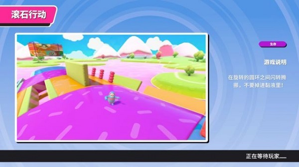 提示:这张图我也就碰到过 2 次,是一个平台不大的关卡。个人推荐是尽量找人少的一侧就行规避,然后条件允许的话站在场地的前半场方便第一时间跳跃障碍和避免被推下去的可能。这张图最怕的就是最后人群都堆在一起然后空间狭小的情况下由于体积碰撞导致自己不能及时规避障碍物然后被淘汰。