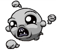 和原版没有区别,血量少,P1本体追击,连体小孩自机狙,P2本体死过后小孩会发怒加速追击玩家。但是由于重生地图和原版不同,进门后请快速反应,因为可能会被开场卡位,影响无伤成就和天使恶魔等!绕场若干周就可以了,很简单的boss。变体大的速度会快一些,小的慢很多。