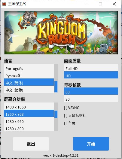 3、弹出设置菜单,这里选择中文进行游戏,玩家也可自行配置游戏的画质和分辨率;