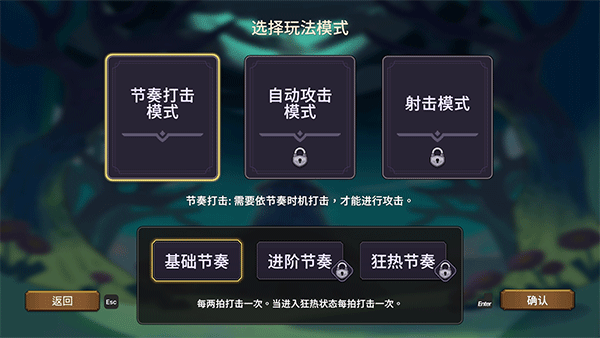 4、新手可选“基础节奏”-“节奏打击模式”,后续解锁更多玩法节奏模式,完成后点击确认。