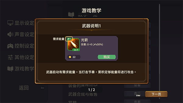 1、进入游戏主菜单后点击"选项"进行一些如显示、控制、声音等游戏基础设置,游戏教学功能可帮助玩家更快熟悉游戏操作方式。