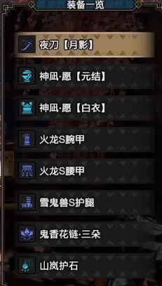 当前新手毕业套装,可以选择迅龙太刀、神凪(只有的只第三声)愿元结和白衣,然后就是上位的火龙腕甲和腰甲,脚就是雪兔首的护腿,可以发动攻击4、挑战者4、利刃和纳刀术。