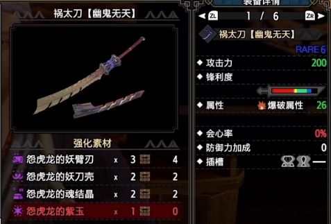 之后可以到集会所的7星,武器还是可以继续升级的,比如到后面还有怨虎龙的祸太刀【幽鬼无天】等。