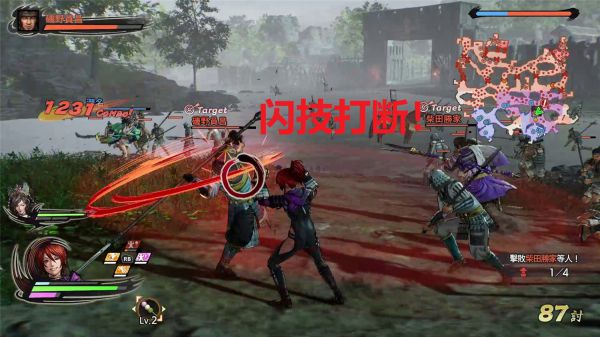 敌人会经常使用红色的范围技能,释放的时候会带有霸体,看似很厉害。我们其实可以用闪技或无双乱舞来中断敌人的技能释放,这意味着“预留闪技”成为了战斗中的基本技巧,大家要熟练掌握。